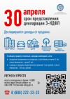 Уважаемые жители! До 30 апреля необходимо представить в Федеральную налоговую службу России декларацию формы 3-НДФЛ, если вы получили доходы от продажи имущества.